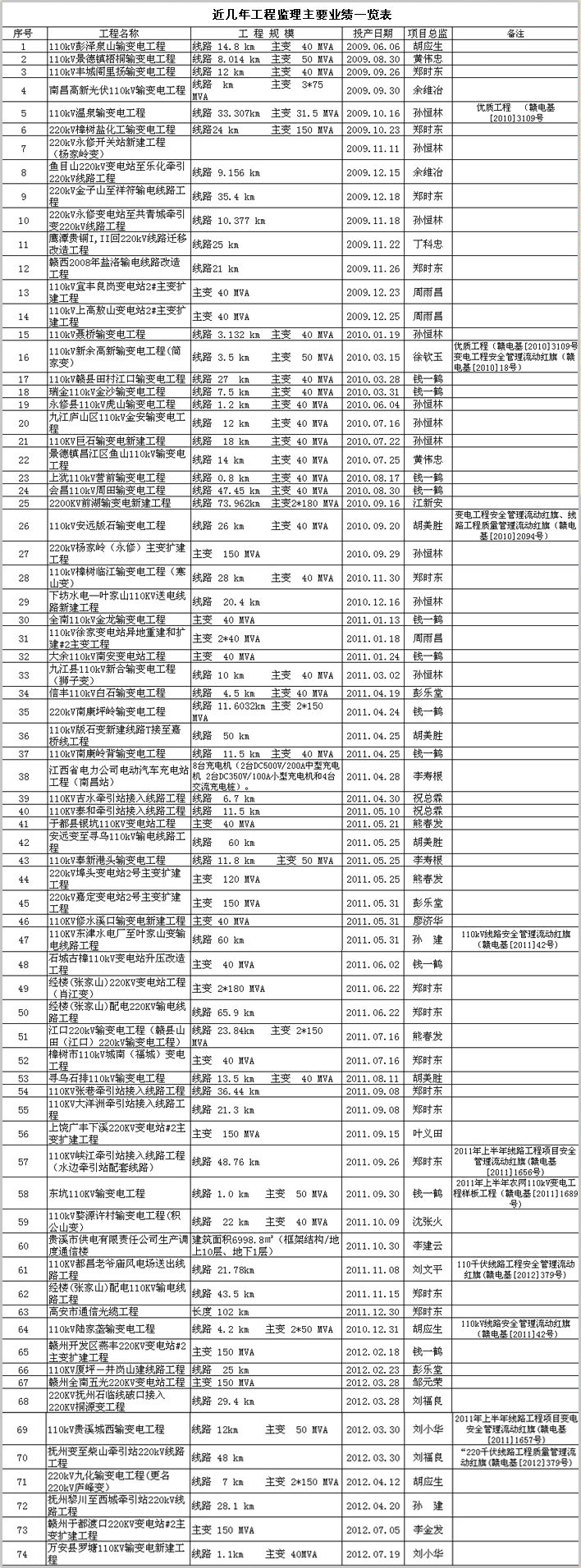 近幾年工程監(jiān)理主要業(yè)績