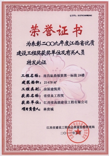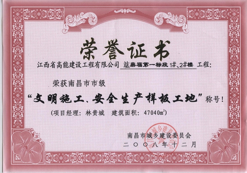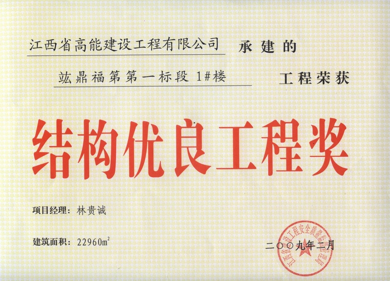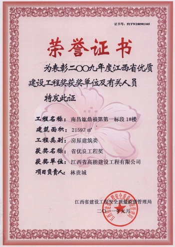 竑鼎福第獲獎證書