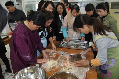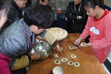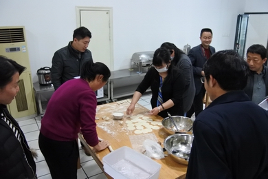 下午兩點(diǎn)整,裁判長一聲令下,包餃子比賽正式開始。比賽現(xiàn)場一片火熱,各代表隊(duì)隊(duì)員分工明確、相互配合,一時(shí)間面粉共衣裙一色,肉餡與面皮齊飛!在大家的齊心協(xié)力配合下,六支隊(duì)伍均順利完成了100個餃子的任務(wù),并都有不同數(shù)量的增加。