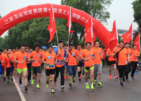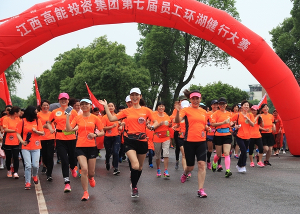 夏雨瀝淅滌凡塵,高能健行意志昂。2018年5月12日,高能投資集團成功舉辦了第七屆員工環(huán)湖健行大賽。本次活動全程12.5公里,依舊在美麗的艾溪湖畔舉行。參賽員工178人,家屬110人,較上屆增加了40多人。