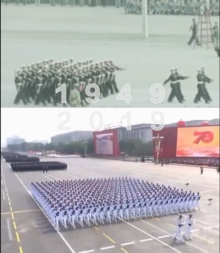 中國,從70年前的“小米加步槍”到現在的“縱橫萬里海疆,勇闖遠海大洋”戰(zhàn)旗方隊浩蕩而來,曾經形單影只的護旗車一去不返。