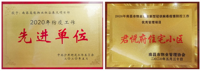 2020年6月3日,在南昌市物業(yè)管理協(xié)會(huì)舉辦的“南昌市物業(yè)服務(wù)行業(yè)在新型冠狀病毒疫情防控工作中表現(xiàn)突出的先進(jìn)集體、優(yōu)秀管理項(xiàng)目”表彰大會(huì)上,江西高能物業(yè)管理有限公司(以下簡(jiǎn)稱“高能物業(yè)”)服務(wù)的君悅府住宅小區(qū)被評(píng)為“優(yōu)秀管理項(xiàng)目”。這是繼2020年5月高能物業(yè)紅谷春天服務(wù)中心獲中共沙井街道工作委員會(huì)“防疫工作先進(jìn)單位”之后的又一殊榮。