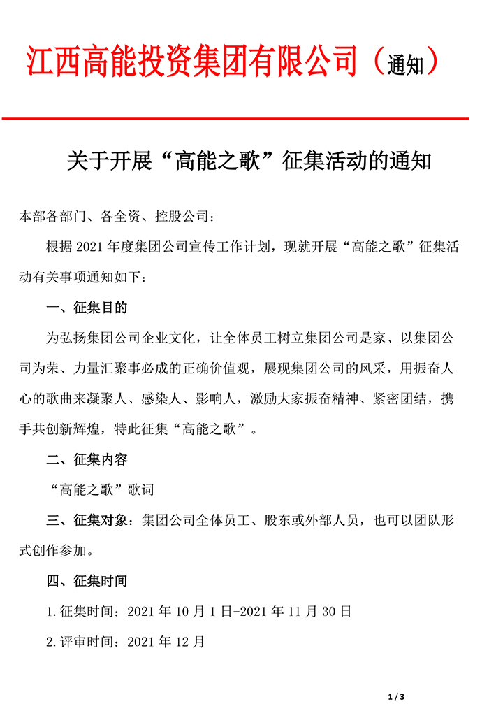 關(guān)于開展“高能之歌”征集活動的通知