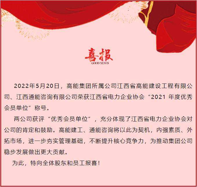 喜報|高能建工、通能咨詢榮獲“2021 年度優(yōu)秀會員單位”