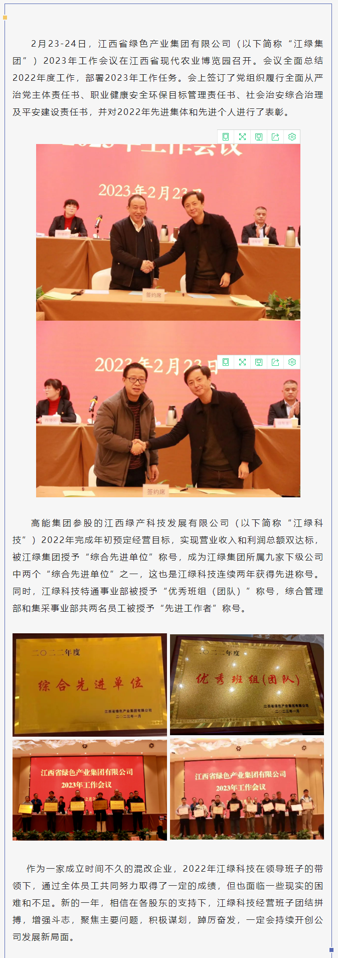 高能集團(tuán)參股的江西綠產(chǎn)科技發(fā)展有限公司獲佳績!