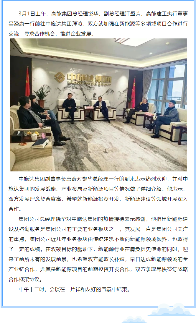 高能集團(tuán)總經(jīng)理饒華一行拜訪中施達(dá)集團(tuán)