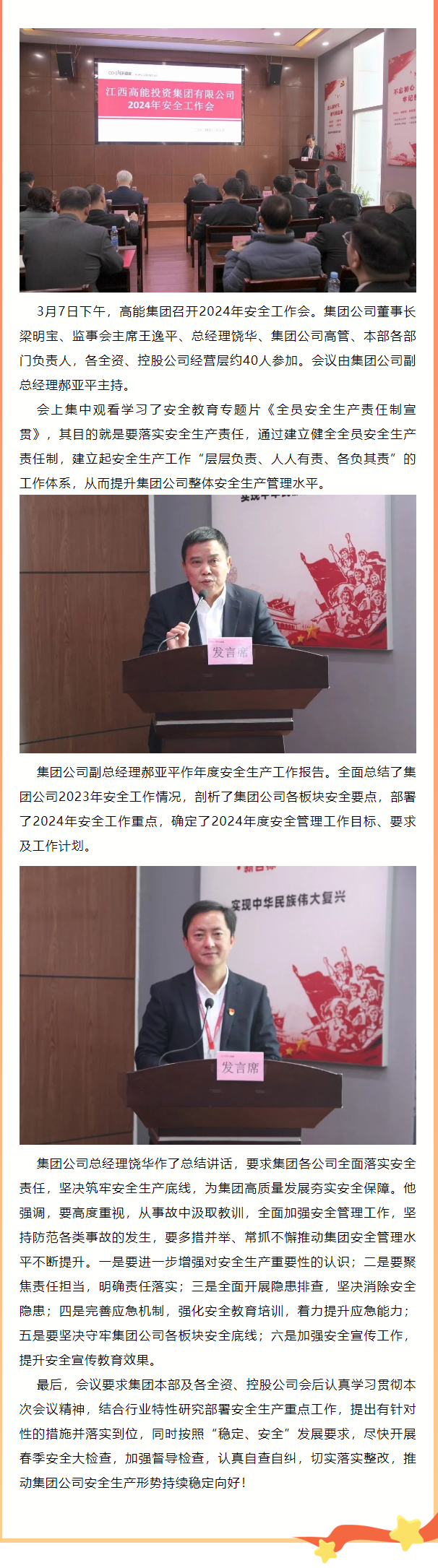 全面落實安全生產(chǎn)責(zé)任,堅決筑牢安全生產(chǎn)底線,為集團高質(zhì)量發(fā)展夯實安全保障——高能集團召開2024年安全工作會