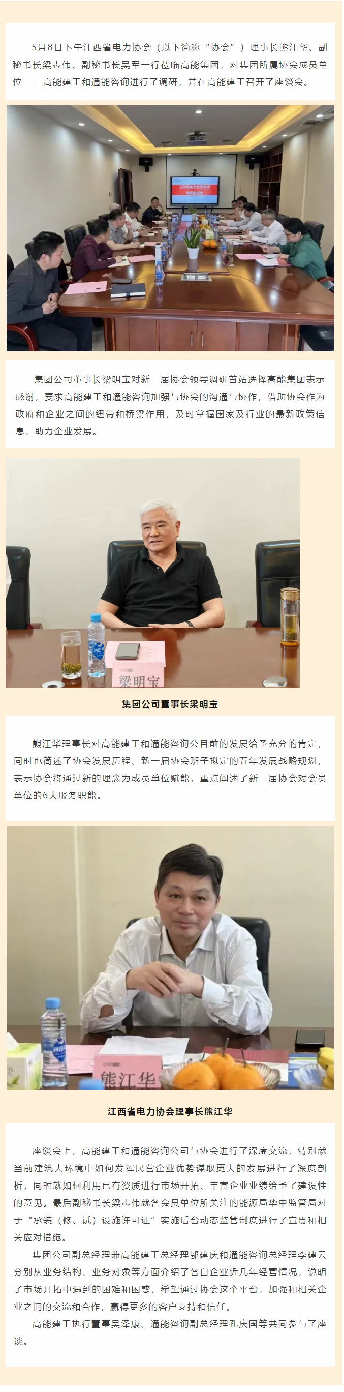 江西省電力協(xié)會熊江華理事長一行蒞臨高能建工、通能咨詢調研座談
